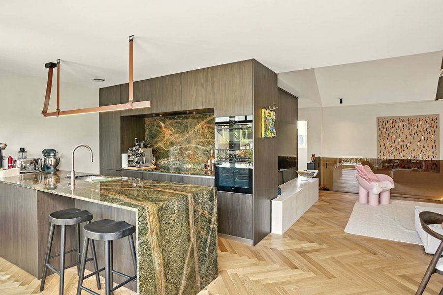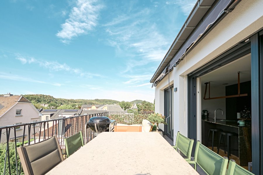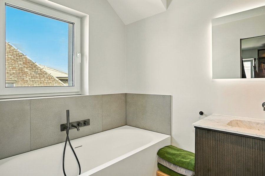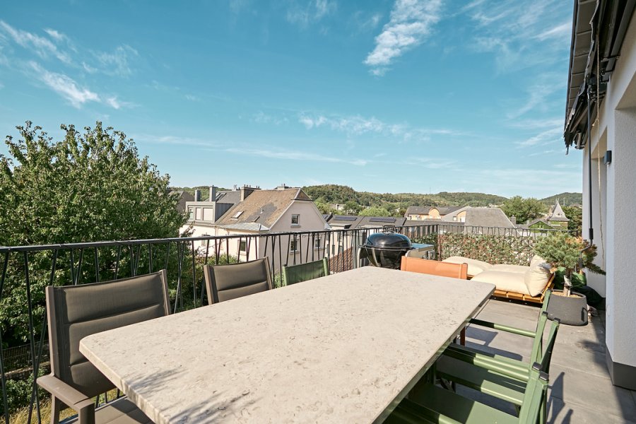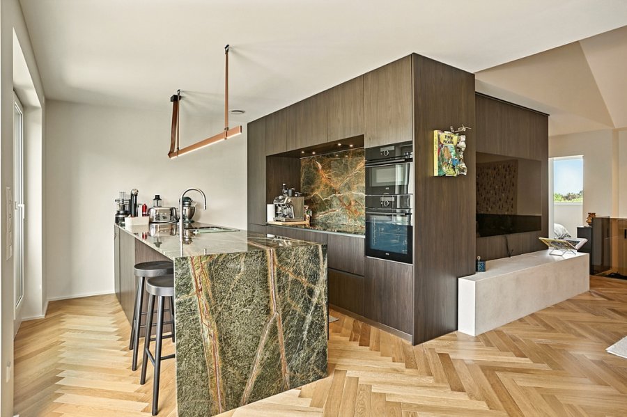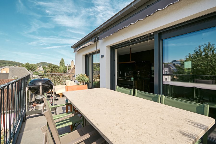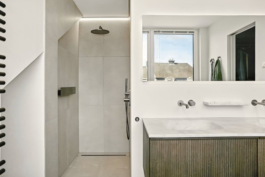 From the living room, you have direct access to a beautiful south-facing terrace, offering ample space for lounge furniture, a dining table, and a barbecue. From here, enjoy an amazing panoramic view over the rooftops of the city, the church, and the forest on the horizon ? a truly special setting for everyday life and entertaining.